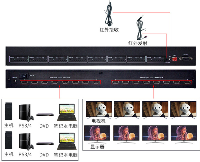 8x8 HDMI 2.0 4K@60Hz Matrix with rs232 and IR remote control